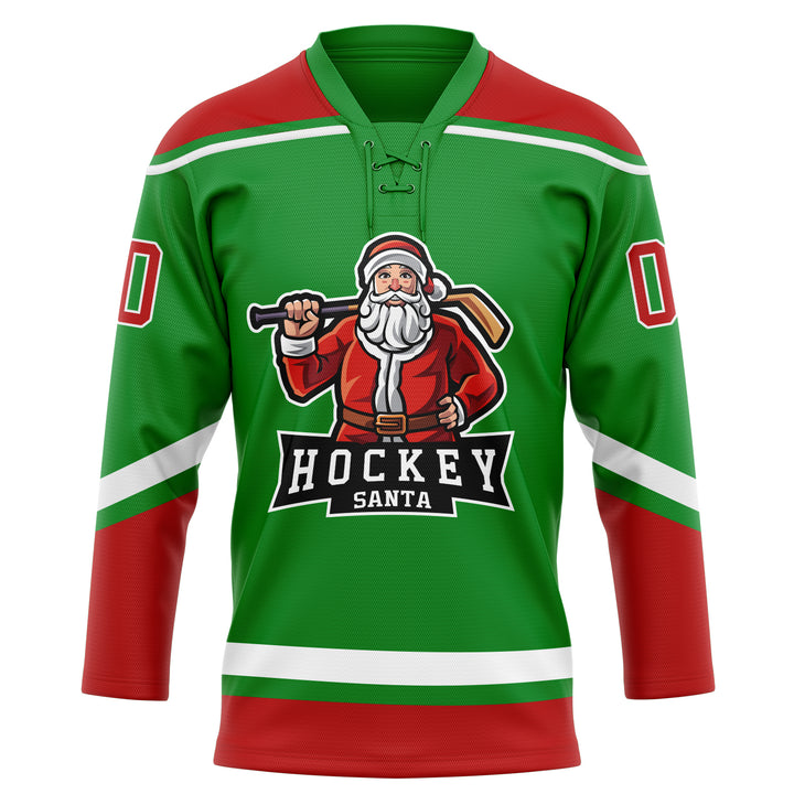 Custom Grass Green Red-White Christmas Santa Claus 3D Hockey Lace Neck Jersey