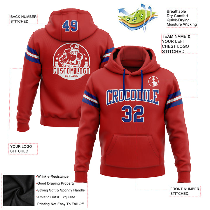 Custom Stitched Red Royal-White Football Pullover Sweatshirt Hoodie