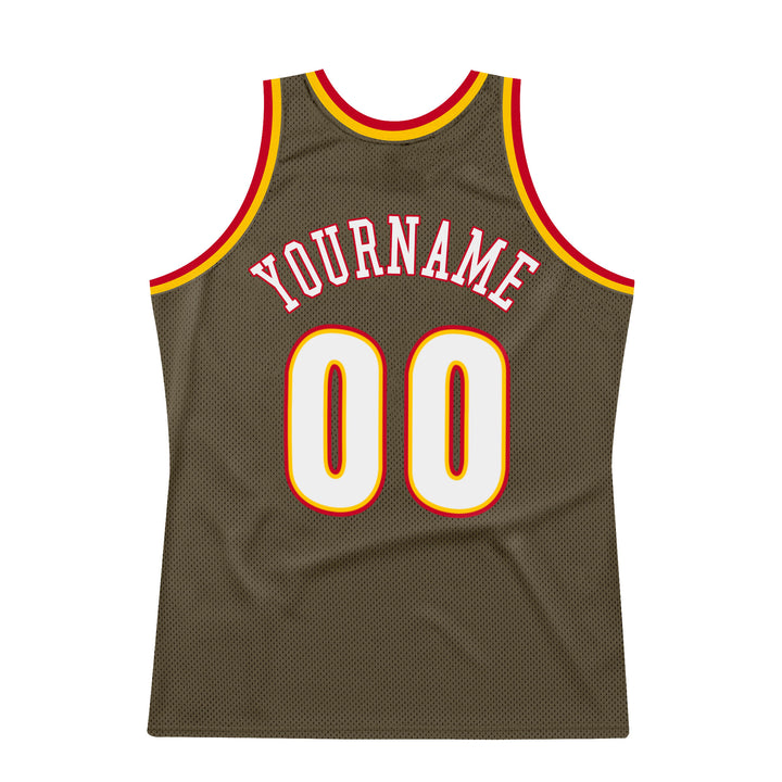 Custom Olive White-Red Authentic Throwback Salute To Service Basketball Jersey
