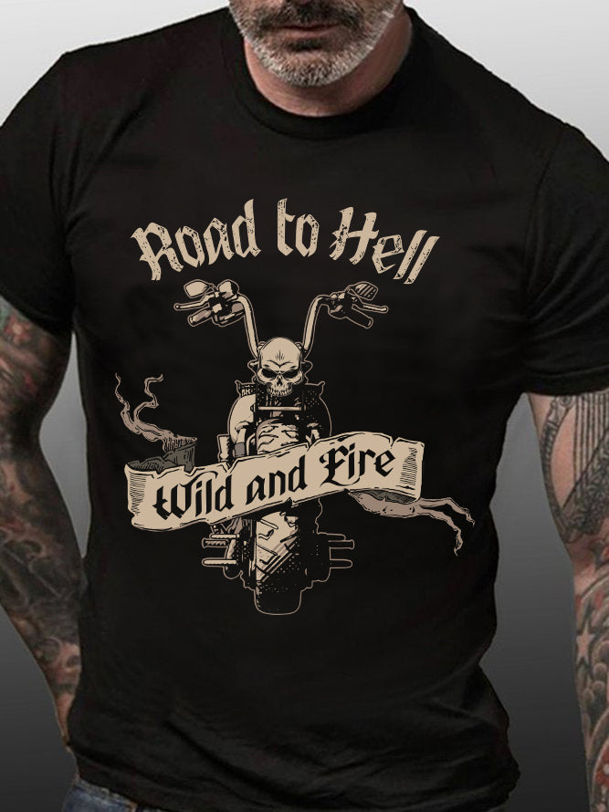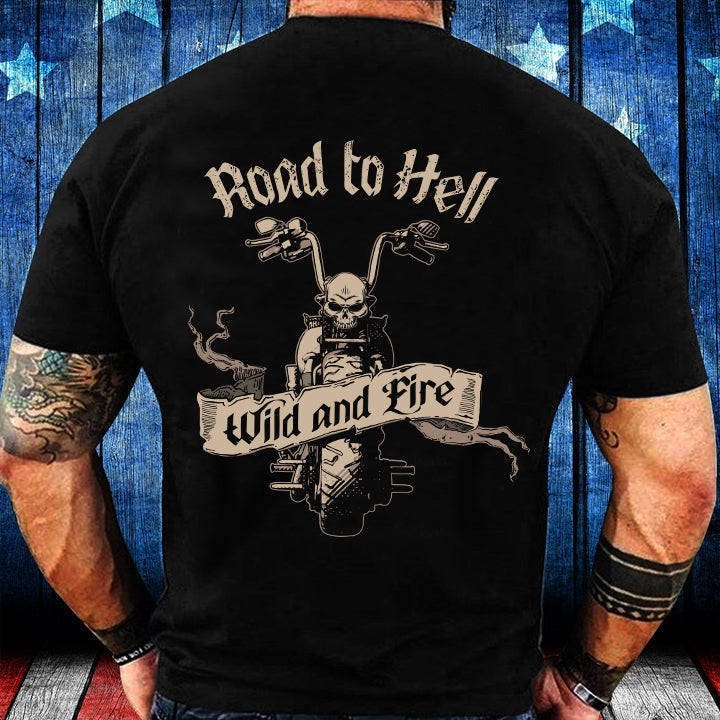 Road To Hell Wild And Fire Skeleton Motorcycle T-Shirt