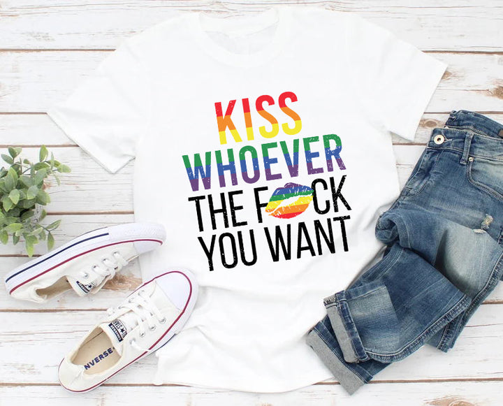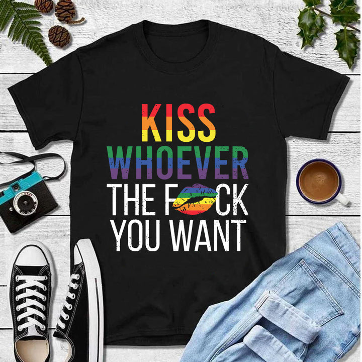 Kiss Whoever The Fuck You Want Rainbow LGBT T-Shirt