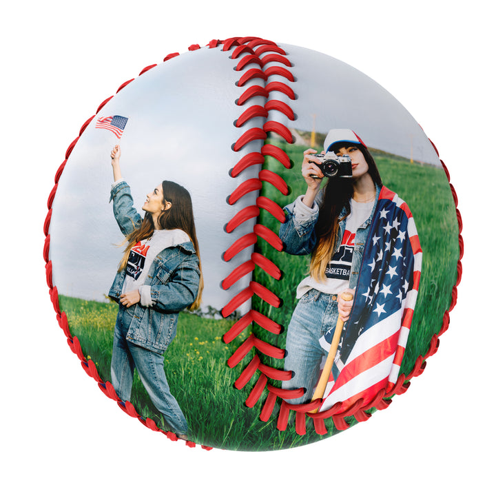 Personalized 2 Wife Girlfriend Family American Flag Photo Baseballs